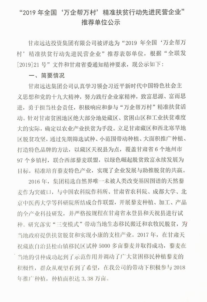 “2019年全國‘萬企幫萬村’精準扶貧行動先進民營企業”推薦單位公示
