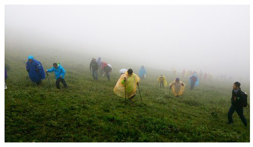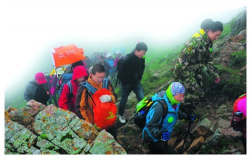 從馬銜山最東面的小東山出發,經過大、小石馬,到達山頂。全程道路崎嶇,能見度3米,時而雨雪交加,時而大霧縈繞。參賽隊員面對異常復雜的氣候條件和全然陌生的地理環境,憑著自己堅定的信念和超人的毅力艱難行進。于傍晚7:00許,各參賽隊陸續到達馬銜山山頂,完成全程賽事。