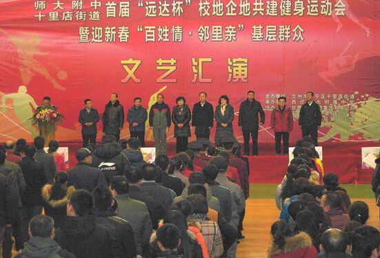 2015年12月27日,由西北師范大學附中和十里店街道籌備組織,由遠達集團獨立贊助的“首屆‘遠達杯’校地、企地運動會”在位于安寧區的西北師范大學附中體育館舉辦。來自安寧區十里店街道轄區的10余個單位和甘肅遠達集團近500余人參加了當天的開(閉)幕式和各項比賽。遠達集團劉羽桐董事長,副總裁宋佩新、副總裁張磊、財務總監楊朝暉、房地產總經理燕曉剛等領導蒞臨運動會現場并參加比賽、為運動員加油鼓勁,黨支部書記王生春代表集團公司在開幕式上致辭,劉董事長,宋總、張總、楊總監在閉幕式為獲獎單位、運動員頒獎。經過激烈的比賽(籃球、拔河、羽毛球等項目在27日前已決出名次),遠達集團分別獲得“籃球男子組冠軍”、集體“優秀組織獎”、個人“優秀組織獎”、齊心協力賽“三等獎”的成績。