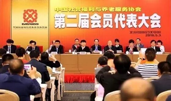 中國(guó)社會(huì)福利與養(yǎng)老服務(wù)協(xié)會(huì)第二屆會(huì)員代表大會(huì)現(xiàn)場(chǎng)(劉羽桐主席臺(tái)后排右三)