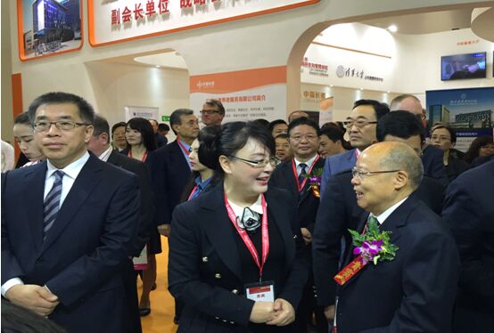民政部副部長(zhǎng)高曉彬(中)、南加大戴維斯老年學(xué)院院長(zhǎng)平夏斯·科恩(左一)參觀中福長(zhǎng)者養(yǎng)老服務(wù)有限公司展會(huì)展廳現(xiàn)場(chǎng)