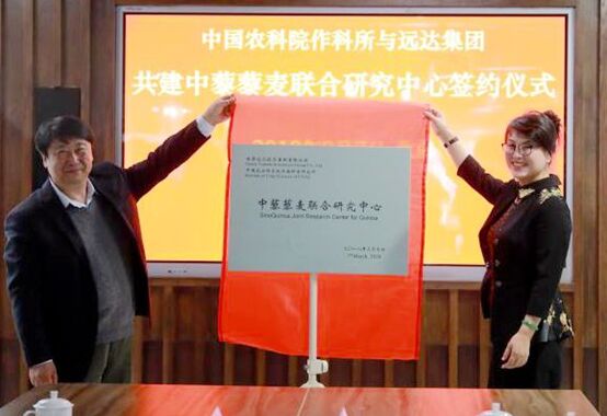 藜麥為媒,強強攜手。正是因為有了對藜麥的共同關注,才有了此次中國農科院作物所和甘肅遠達集團共建藜麥研究中心的盛舉。一年多來,中國農科院作物所相關科研人員多次來到天祝藜麥基地考察,發現了天祝“中國青藏高原——河西走廊高原藜麥適種帶”,認為天祝藜麥從內質、品相到產量,均優于國內其它地方所產,是國內藜麥種植的黃金地帶。遠達集團藜麥事業群負責人也多次奔赴中國農科院作科所,溝通情況,請教問題,探討思路,勾畫未來。隨著業務往來的深入,雙方有了創新合作機制、共建藜麥產業科技創新高地、助力中國藜麥產業健康快速發展、促使世界藜麥產業重心向中國轉移的共同想法。