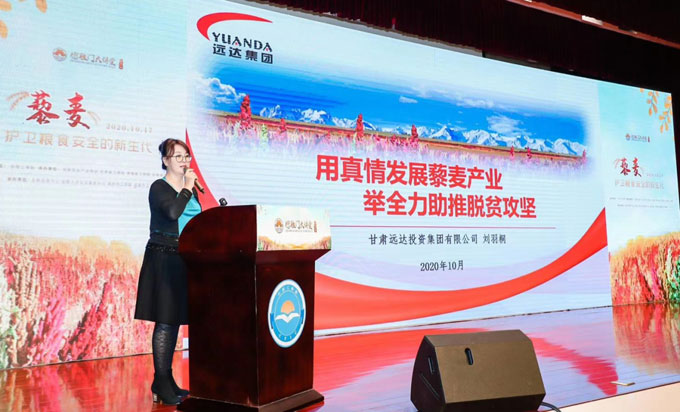 劉羽桐董事長作為特邀嘉賓上臺作了專題發言,重點介給了遠達集團發展藜麥扶貧產業助推脫貧攻堅的經驗做法。與會領導、專家、商界人士對遠達集團發揚“責任與生俱來,奉獻與生相伴”企業發展理念的精神,對企業迅速形成藜麥扶貧產業規模和助推脫貧攻堅的效果等給予了高度評價。活動期間安排了圓桌論壇、藜麥產品展示等環節,遠達集團的藜麥餅干、啤酒、八寶粥等產品受到了大家的充分肯定和歡迎。