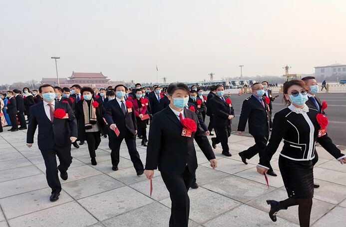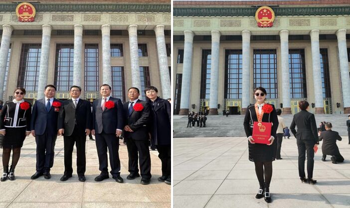 劉羽桐與部分代表一起步入人民大會堂會場接受表彰